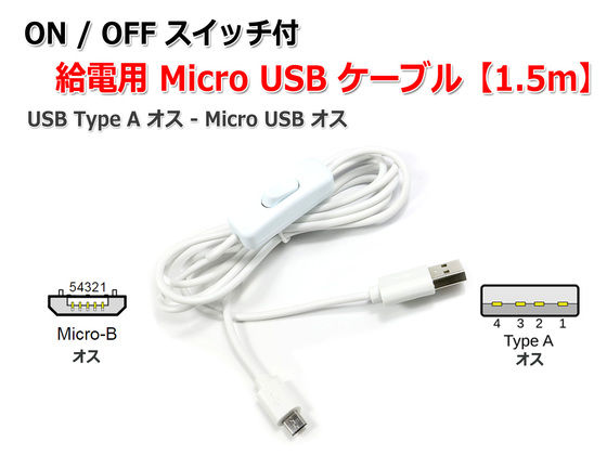 スイッチ付きMicroUSBケーブル1.5m USB(オス) to MiroUSB(オス)