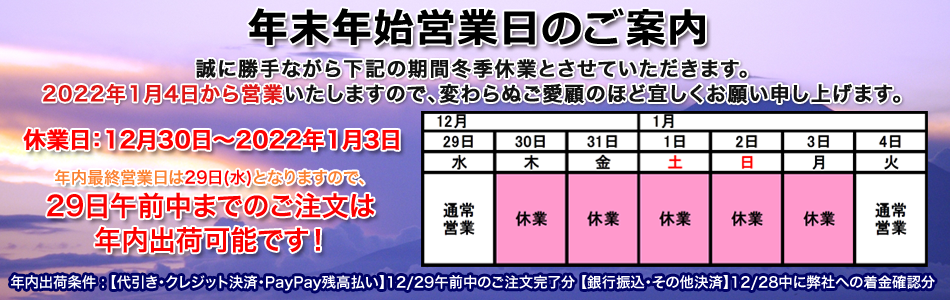 弊社の休業期間中もご注文は通常通り受け付けておりますので、皆様のご注文を従業員一同お待ちしております。